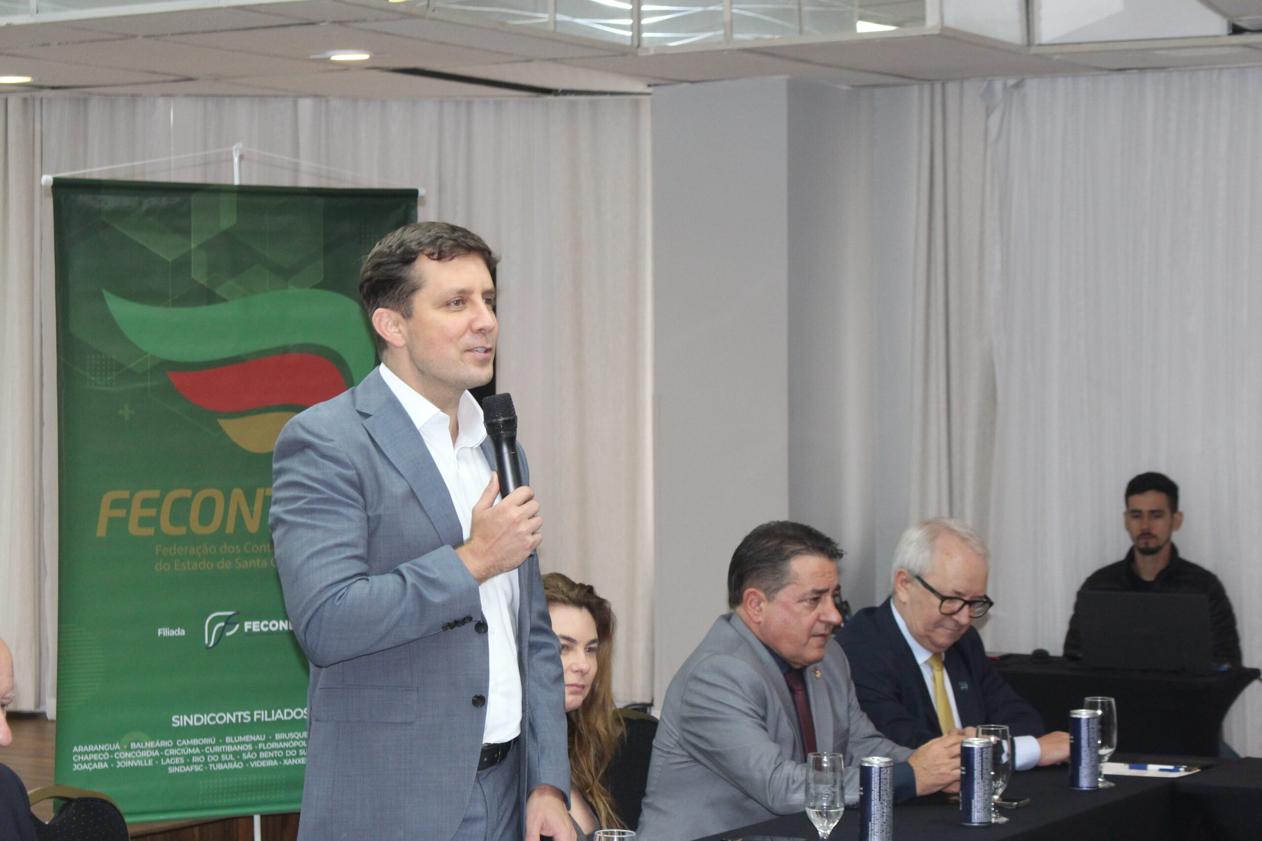 O Sindicont Litoral é a entidade anfitriã e o presidente Silvio Ribeiro fez uma saudação inicial a todos os presentes, enfatizando alguns pontos importantes do trabalho da instituição. O prefeito de Balneário Camboriú, Fabrício Oliveira, prestigiou a abertura junto com a deputada estadual Ana Paula da Silva (Paulinha). O presidente da Confederação Nacional de Contabilidade (CNCONT), Tadeu Oneda, esteve presente e representou ainda a Feconbras.