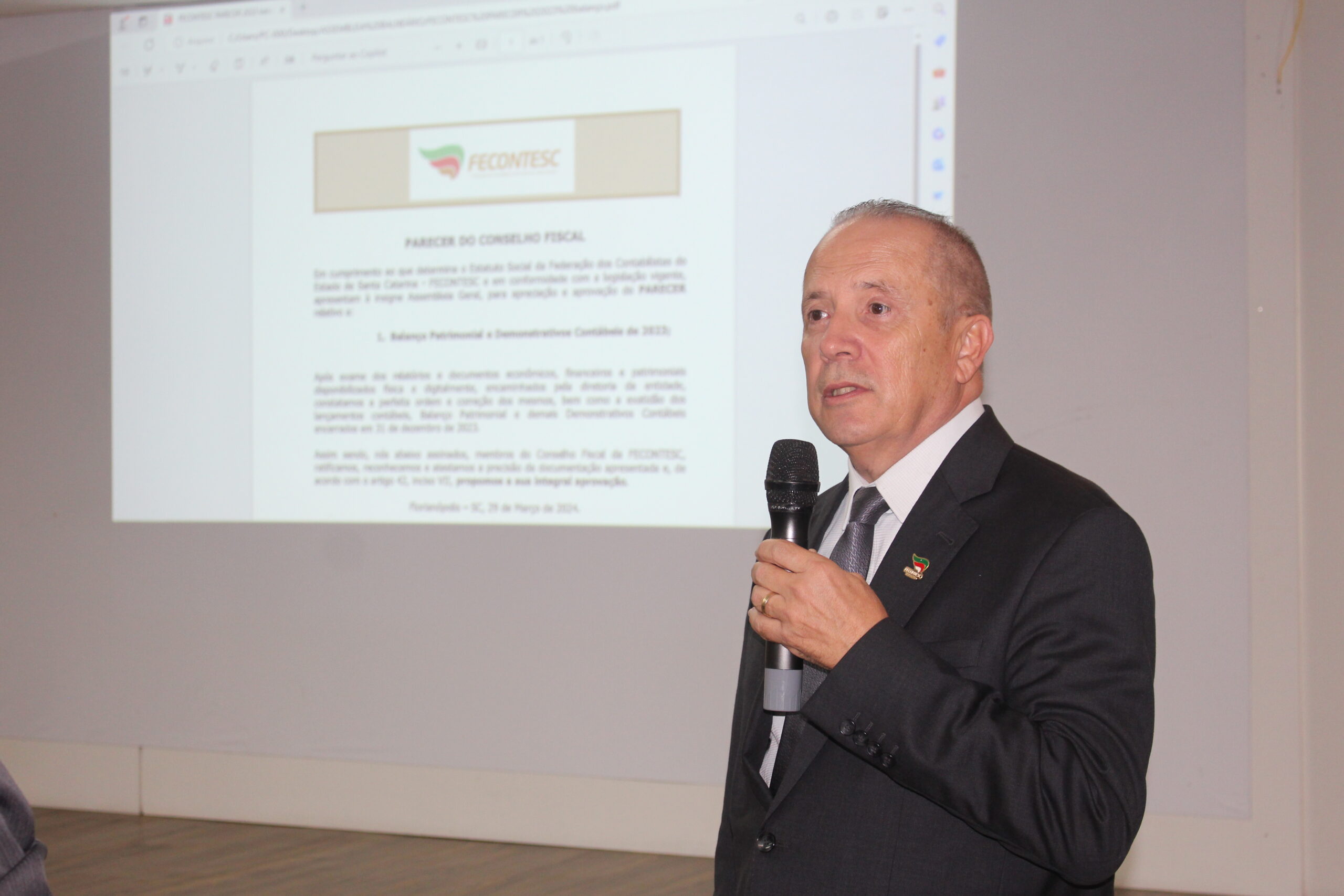O presidente da Junta Comercial do Estado (Jucesc), Fernando Baldissera, e o secretário Geral Luciano Kowalski, estiveram na mesa de honra para apresentar algumas novidades que vem sendo implementadas e agilizam o dia a dia dos contadores. O presidente Fernando Baldissera