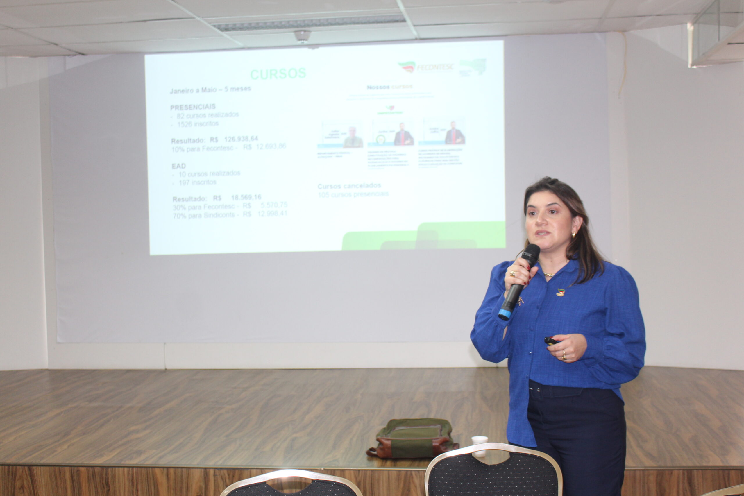 A diretora de Marketing, Justine Arruda, apresentou algumas das ações de comunicação, como a reformulação do site, as oito lives realizadas desde janeiro, os números dos cursos realizados junto com o diretor de Eventos Culturais e Profissionais, Eli Oliveira Souza. Na sequência foi dada a palavra para a vice-presidente Regional do Litoral, Regiane Waltrick, e o vice-presidente Regional Oeste, Ademir Orso.
