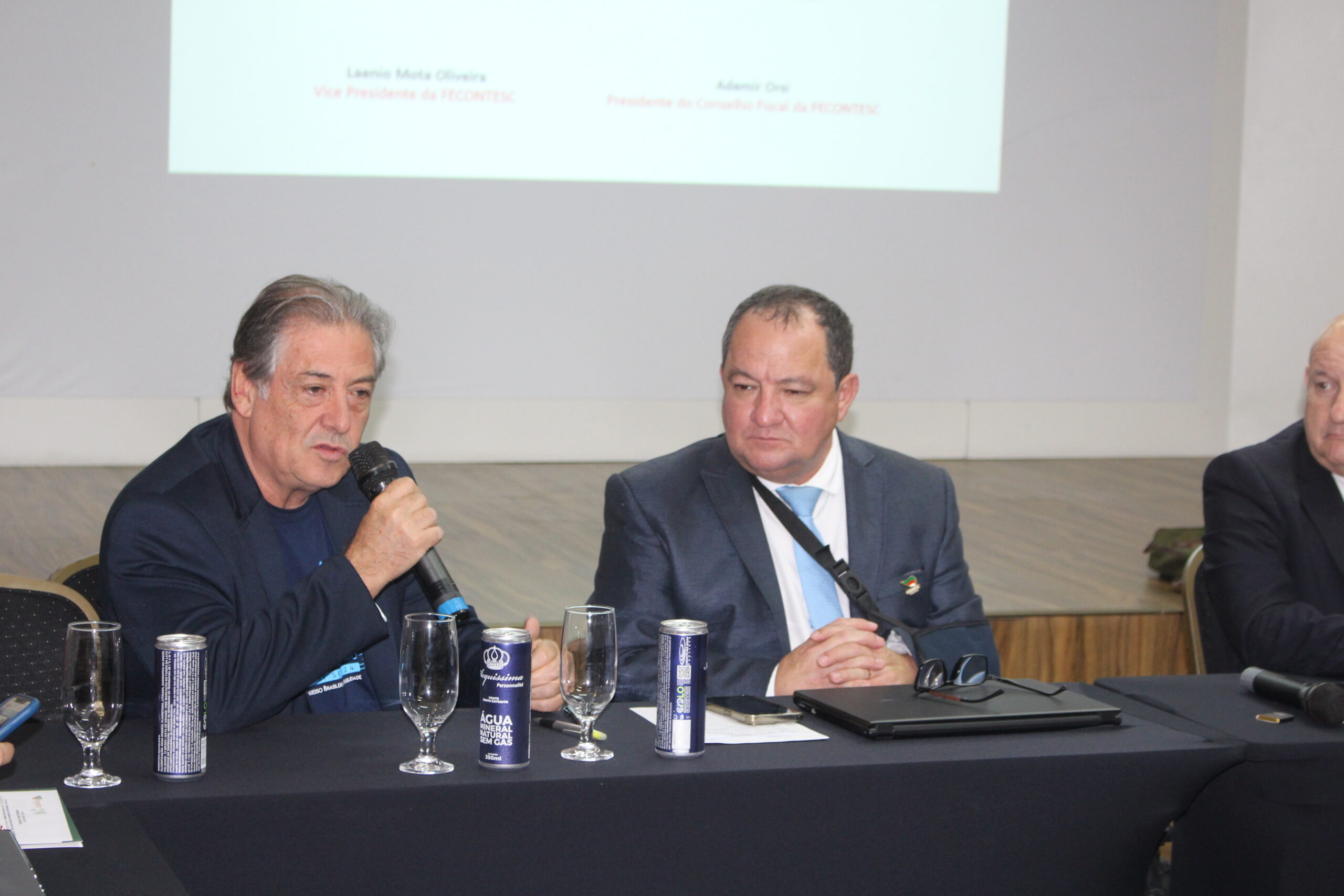 Parceiros – Os parceiros da Fecontesc, Hederson Cassimiro da Hi Gestor, Mauro Mendes da ADV Integra e Julio Peralta da Tributo Justo, tiveram espaço para esclarecer dúvidas sobre os negócios, apresentar suas empresas e destacar que é preciso contar com a participação de todos os Sindiconts para que haja uma rentabilidade para todo o Sistema.