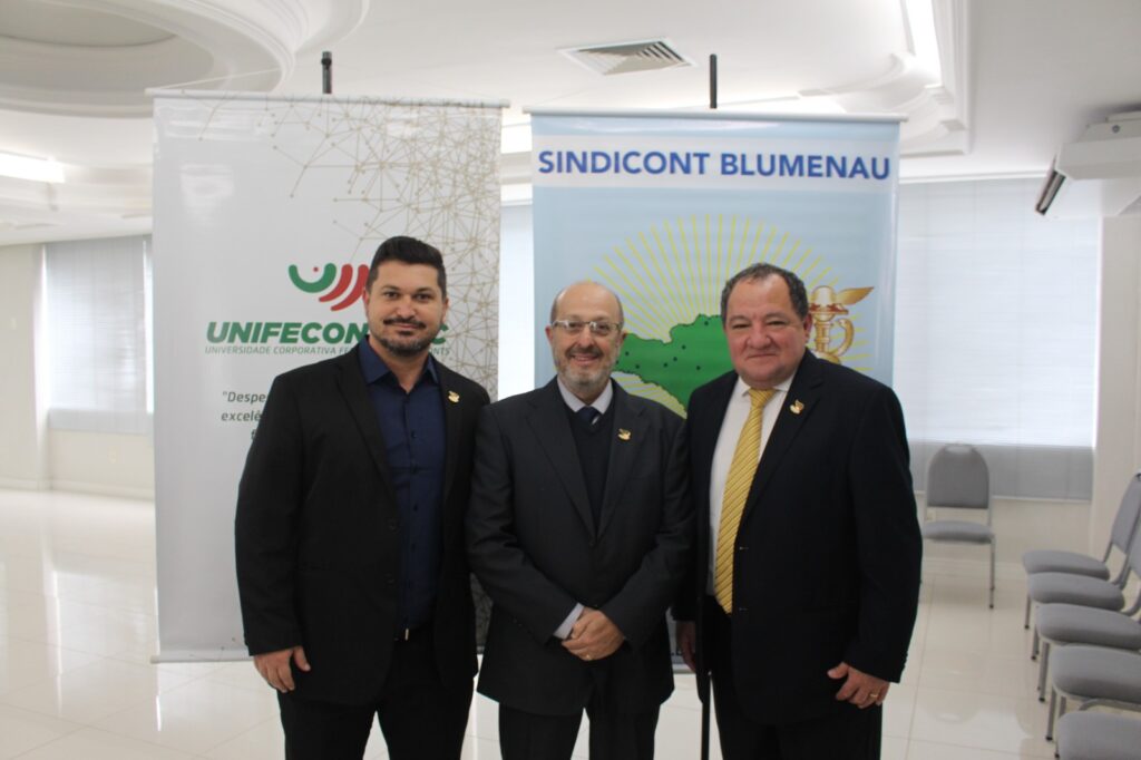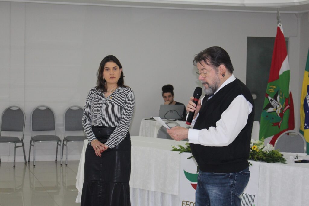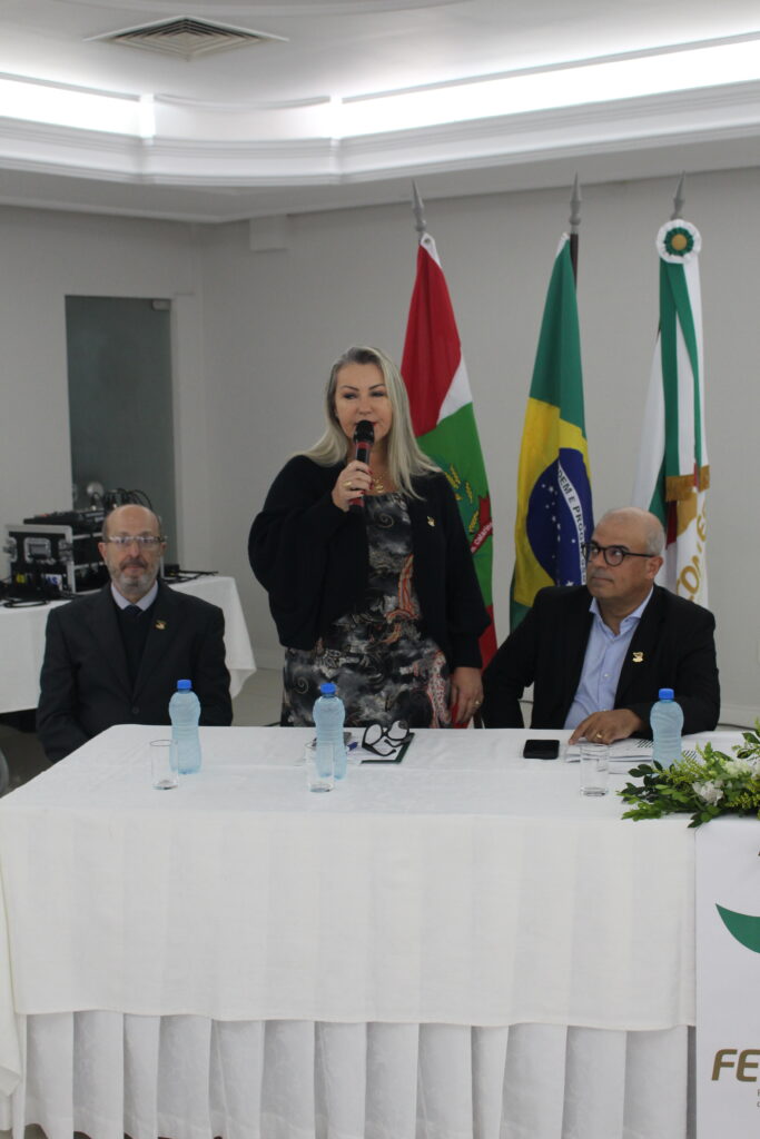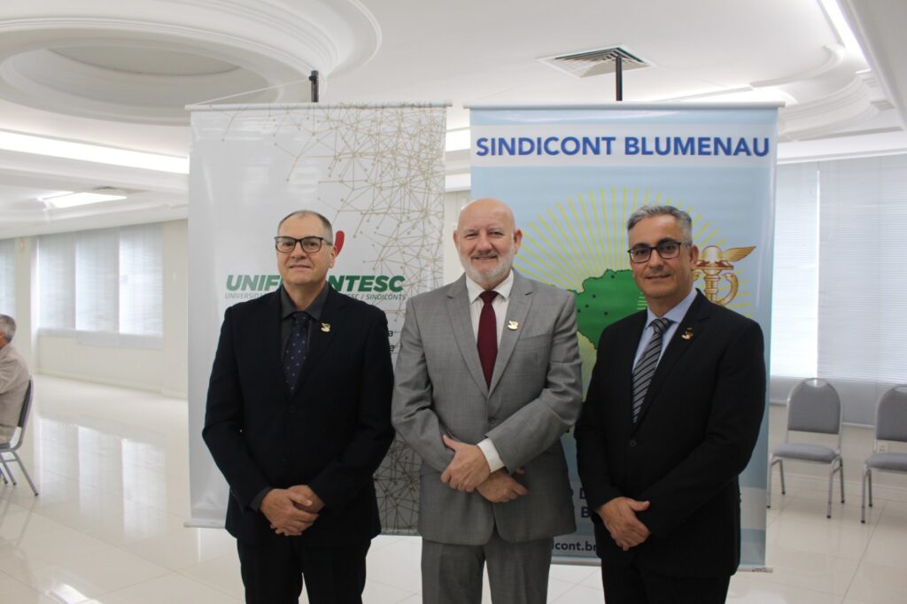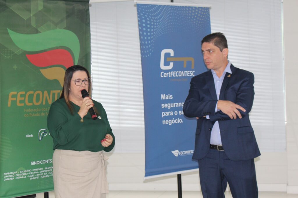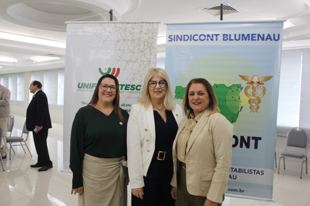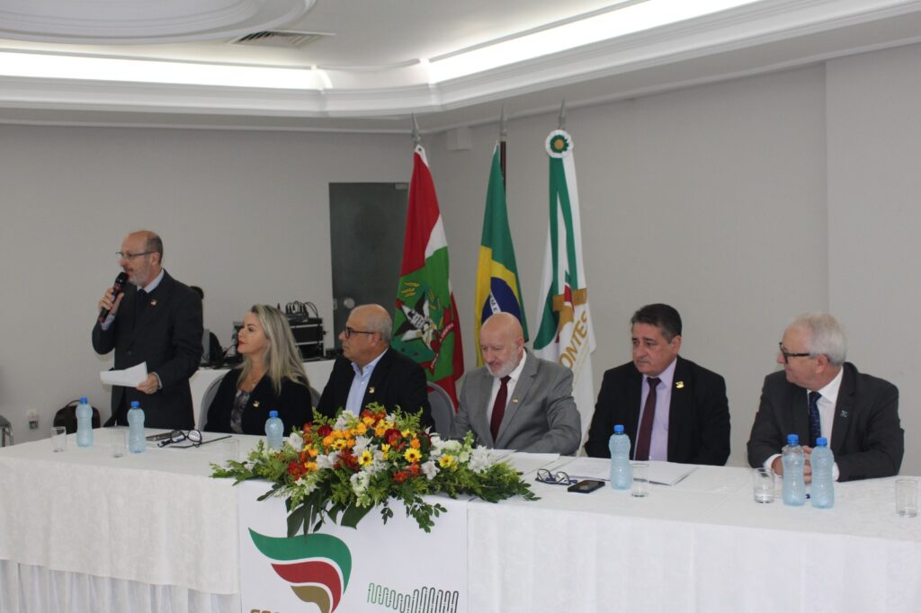 Abertura – Os trabalhos tiveram início às 8h30 com as boas-vindas do presidente da Fecontesc, Dalvair Anghében. A mesa de honra contou com a presença figuras do setor, incluindo Laenio Mota Oliveira, Vice-Presidente da Fecontesc, Regiane Waltrick, Vice-Presidente Regional Litoral, Alvacir Luiz Bahr, Presidente do Sindicont Blumenau, Tadeu Oneda, Presidente do CNCont, representando ainda a Feconbras e Elinton Oliveira Marçal, Secretário de Desenvolvimento Econômico, Inovação e Empreendedorismo de Blumenau. Todas as autoridades fizeram uso da palavra brevemente e abordaram os avanços e desafios do setor contábil.
