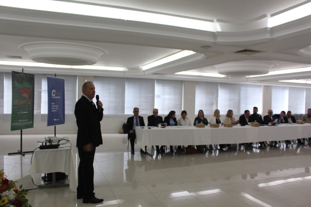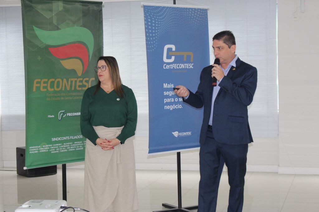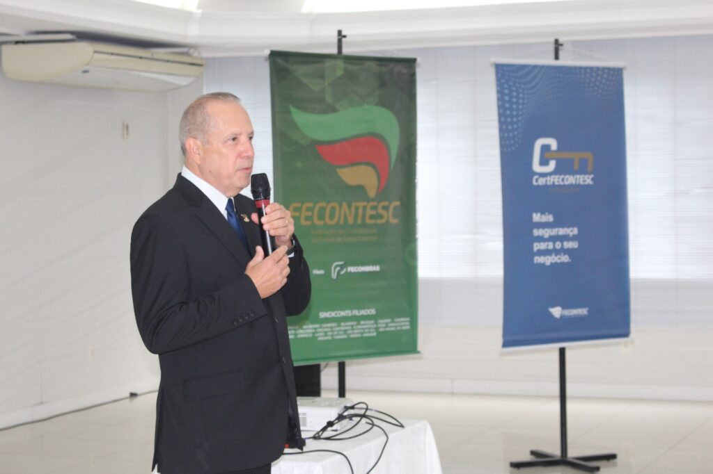 Reforma Tributária – Os presentes puderam acompanhar uma palestra sobre Reforma Tributária com o instrutor Itelvino Schinaider, vice-Presidente de Administração e Finanças do CRCSC e ex-presidente da Fecontesc. Ele trouxe o cenário atual das regulamentações que estão sendo implantadas depois da aprovação da Reforma Tributária, sendo que muitos detalhes, como valores das alíquotas, ainda dependem de definições no Congresso Nacional.