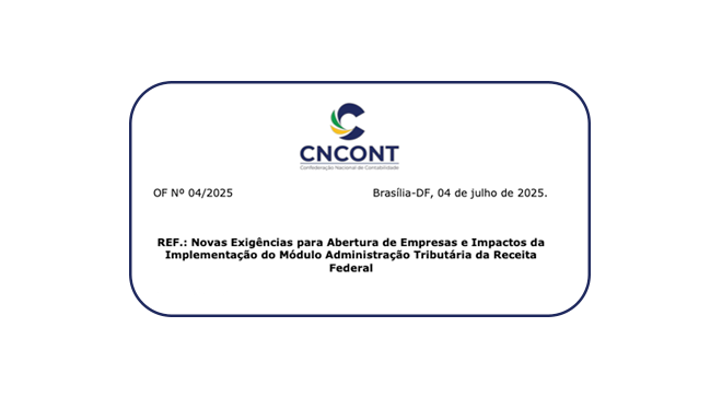 A Confederação Nacional de Contabilidade (CNCONT), representada por seu presidente, Tadeu Oneda, encaminhou ofício ao Ministro da Fazenda, Fernando Haddad, expressando preocupação com as mudanças previstas para o processo de abertura de empresas, anunciadas pela Receita Federal e com vigência prevista para 27 de julho de 2025. A Fecontesc integra a CNCONT e acompanha com […]