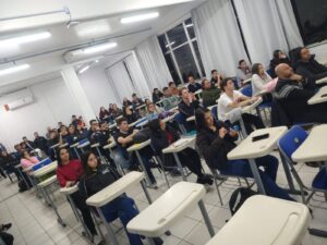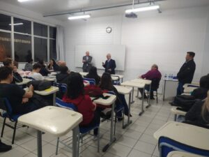 Na noite de 22 de junho, o presidente da Fecontesc Dalvair Anghében ministrou palestra aos acadêmicos de Ciências Contábeis da Uniarp – Fundação Universidade Alto Vale do Rio do Peixe, em Caçador. O convite foi realizado pela coordenadora do curso de Ciências Contábeis, professora Emilene Murer. O ex-presidente da Fecontesc e da Feconbras, Tadeu Oneda, e o presidente do Sindicont Caçador, Cleverson Lima da Silva, também estiveram presentes e contribuíram com a apresentação.