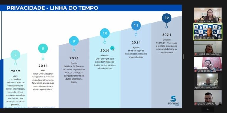 Como todo processo de mudança numa organização exige a sensibilização da alta gestão, a adequação dos processos na Fecontesc para implantação da Lei Geral de Proteção de Dados (LGPD) iniciou com a participação da presidência e na última quinta-feira (20/1) estendeu-se para toda a Diretoria Executiva e presidentes dos Sindiconts que integram o Sistema.