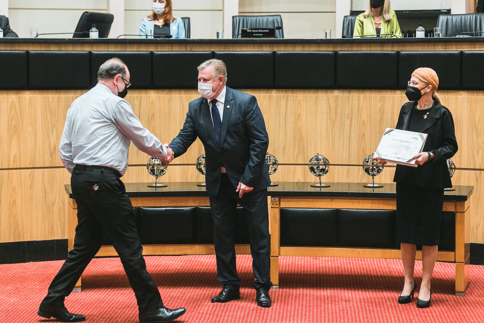 A Assembleia Legislativa de Santa Catarina realizou na noite de ontem, segunda-feira (6/12) a sessão especial da 11ª edição do Prêmio de Certificação e Troféu de Responsabilidade Social – Destaque SC. Foram premiadas organizações sem fins lucrativos, empresas privadas e públicas de todas as regiões catarinenses que se destacaram com ações nas áreas social e ambiental. A Fecontesc coordenou a Comissão Mista com a representação da diretora de Responsabilidade Social, Gabriele Gil Gomes. O presidente Itelvino Schinaider também integra a Comissão.