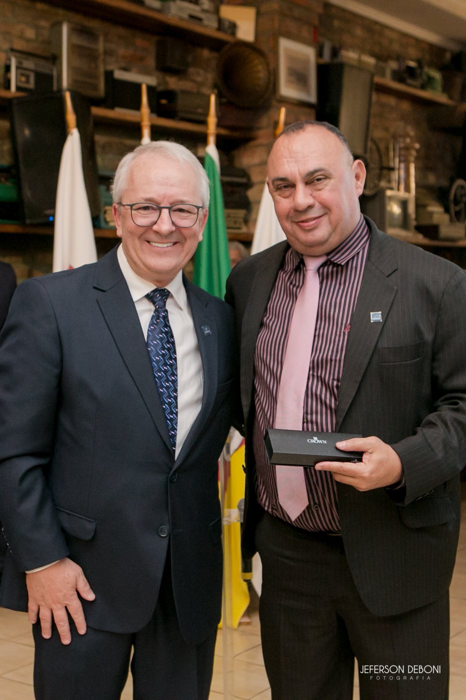 O presidente da Fecontesc, Dalvair Anghében, acompanhou a homenagem junto com os ex-presidentes da Fecontesc, Tadeu Oneda (ex-presidente da Feconbras) e Itelvino Schneider.