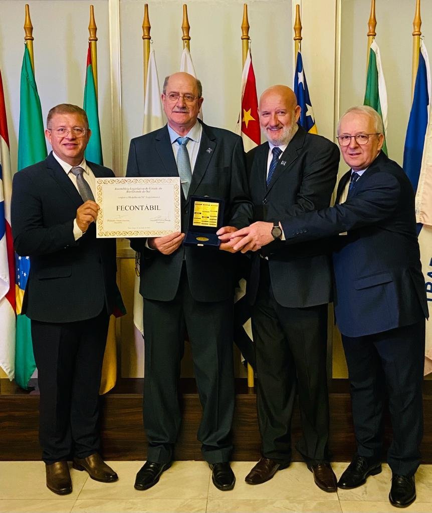 Na tarde desta quinta-feira (1 de junho) foi dia de celebrar os 75 anos da Fecontábil.  No Salão Júlio de Castilhos da Assembleia Legislativa do Rio Grande do Sul, o deputado Carlos Búrigo (MDB) entregou a medalha da 56ª Legislatura à Federação dos Contadores e Técnicos Contábeis do Rio Grande do Sul (Fecontábil) junto com o presidente da casa, deputado Vilmar Zanchin. O presidente da Fecontábil, Fernando Spiller, recebeu a honraria e destacou a importância do reconhecimento à categoria.