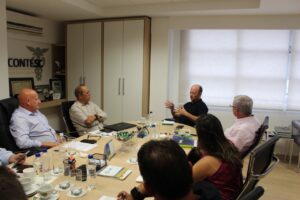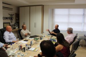 No final da reunião, a Diretoria recebeu a visita do presidente do Sindicont Florianópolis (Sincopolis), Aláecio Amorim, que aproveitou a oportunidade para debater as prioridades para este ano e quais parcerias a Federação pode realizar em conjunto.