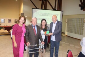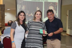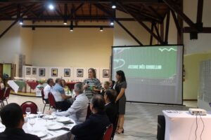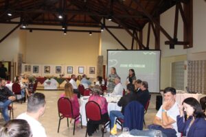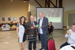 Na noite de sexta-feira (24/2), o Sindicont Serra Catarinense promoveu um evento para encerrar a Assembleia Geral da Fecontesc e fazer a entrega do Prêmio Contador João Celso Schoning para duas personalidades escolhidas na região. A solenidade ocorreu no Centro de Eventos da Pousada Rural do Sesc, em Lages. A presidente do Sindicont Serra Catarinense, Justine Maria Arruda de Souza Neto, fez uma fala de abertura explicando o objetivo do Prêmio, criado pela Fecontesc e agora foi efetivado com a definição da entrega dos troféus nas diferentes regiões do Estado depois de uma eleição realizada pelo Sindicont local.