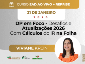 O DP em Foco – Desafios e Atualizações 2026 foi desenvolvido para preparar profissionais do Departamento Pessoal para enfrentar, com segurança e pr...